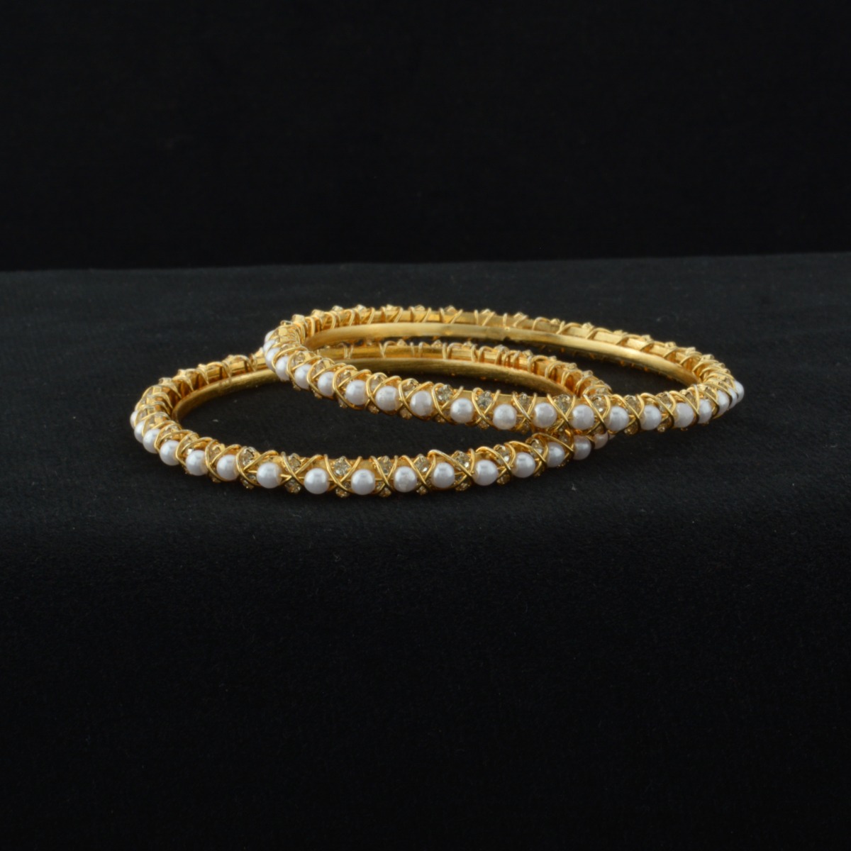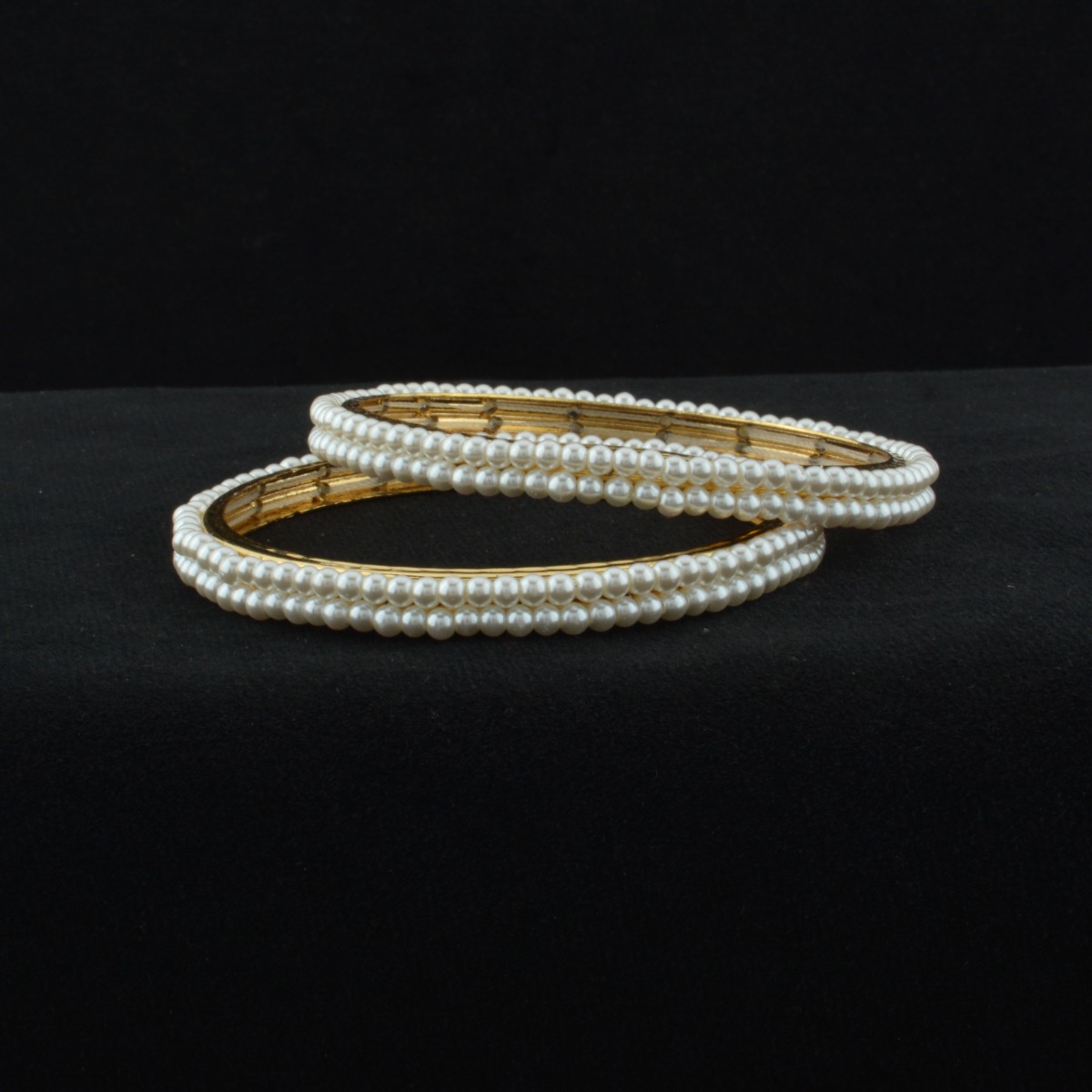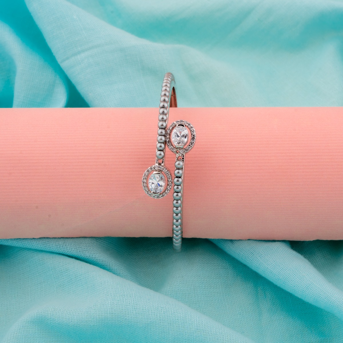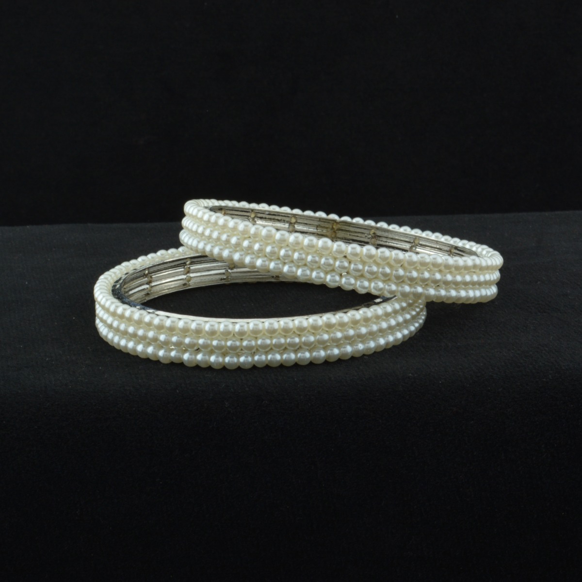 Elevate your festive elegance with these stunning Pearl Bangles crafted in an exclusive designer pattern. Featuring luminous white pearls set against sleek rhodium plating, these bangles offer a modern shine with timeless charm. The without-chabi style ensures a smooth, seamless look that sits gracefully on the wrist. Perfect for gifting, special occasions, festival wear, and party events, they add a refined sparkle to every celebration. Designed for women who appreciate sophistication and comfort, these bangles suit all regional styles effortlessly. Pair them beautifully with sarees and Indian suits to create a graceful, polished, and effortlessly elegant appearance.