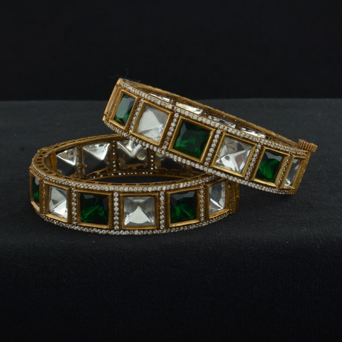 Add timeless elegance to your ethnic ensemble with these exquisite Kundan chabi bangles featuring dazzling white colored stones. A perfect blend of traditional craftsmanship and refined beauty, these bangles are designed to complement your festive and special occasion attire. Whether paired with a graceful saree or a classic Indian suit, they lend a royal touch to your look. Intricately crafted to reflect heritage charm, this piece from our Traditional Collection is ideal for weddings, religious events, and festive celebrations. Celebrate tradition with grace and style as these bangles make a sophisticated statement on your wrist. A must-have for every woman.