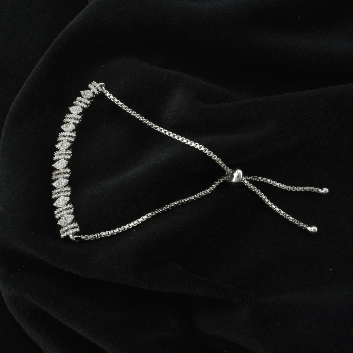 Add refined brilliance to your jewelry collection with this elegant Guaranteed White Gold Bracelet featuring guaranteed AD stones and an exclusive designer finish. Enhanced with premium rhodium gold plating, it offers a radiant white shine and excellent durability for long-lasting wear. The sparkling stones bring subtle glamour, making it ideal for festival wear, office styling, special occasions, and thoughtful gifting. Lightweight and comfortable, it complements all regional looks effortlessly. Pair it beautifully with sarees and Indian suits to achieve a polished, graceful appearance. A versatile accessory that blends modern sophistication with timeless charm and everyday elegance.