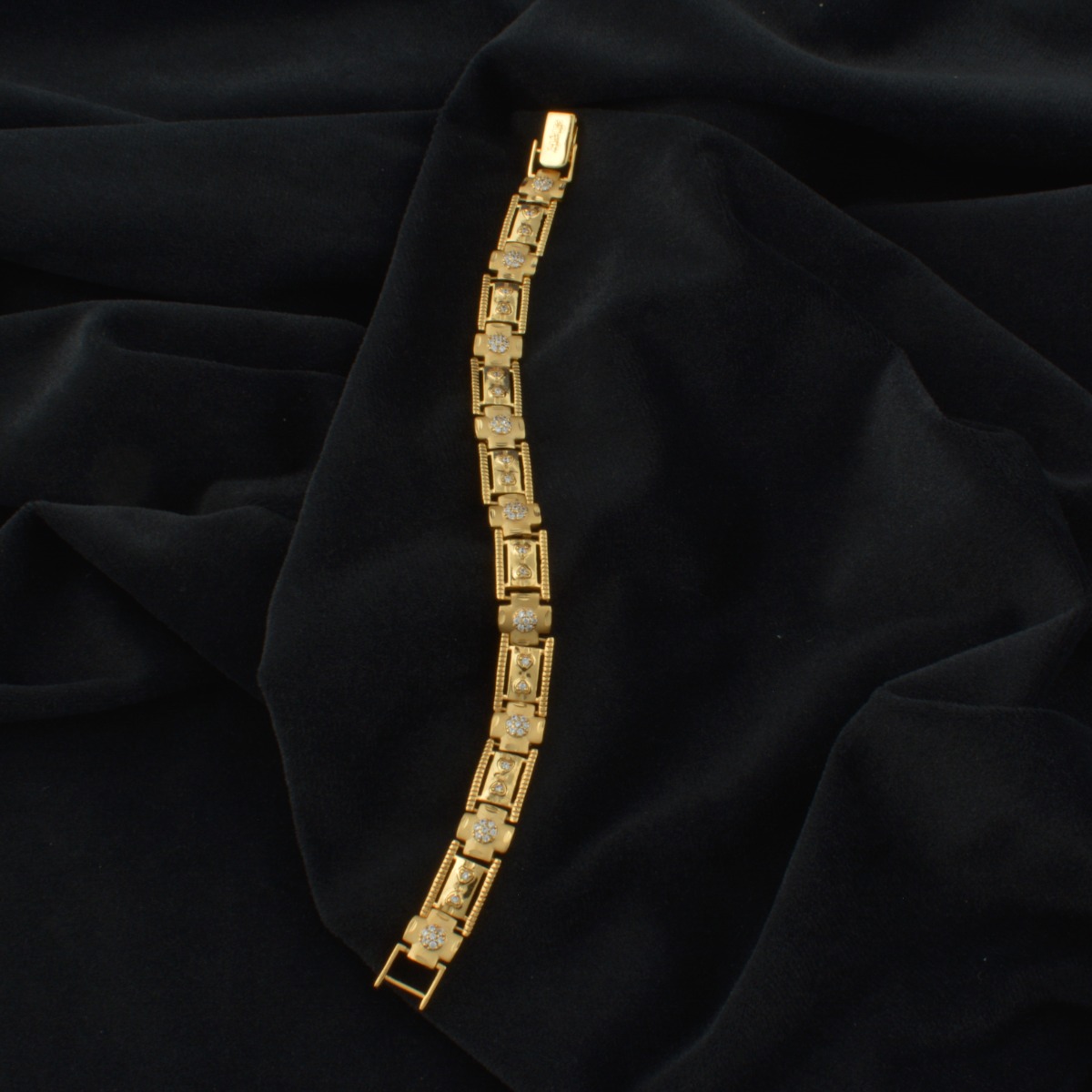 Bring effortless charm to your jewellery collection with this beautifully crafted gold plated guaranteed AD bracelet. Adorned with shimmering white AD, the bracelet features a clean and modern design that instantly adds a touch of sophistication to your look. The warm gold plating enhances the sparkle of the stones, creating a graceful balance between elegance and style. Whether you are dressing up for a festive celebration, a special event, or a party, this bracelet complements sarees, Indian suits, gowns, and other stylish outfits with ease. Thoughtfully designed for women who enjoy contemporary jewellery, it is lightweight, comfortable to wear, and perfect for adding a refined finish to any outfit.