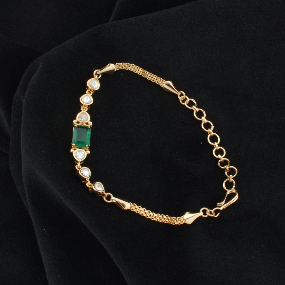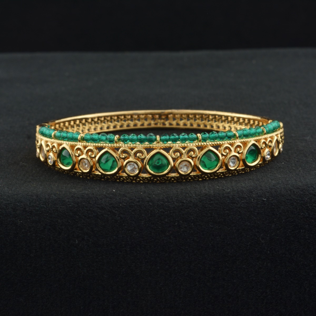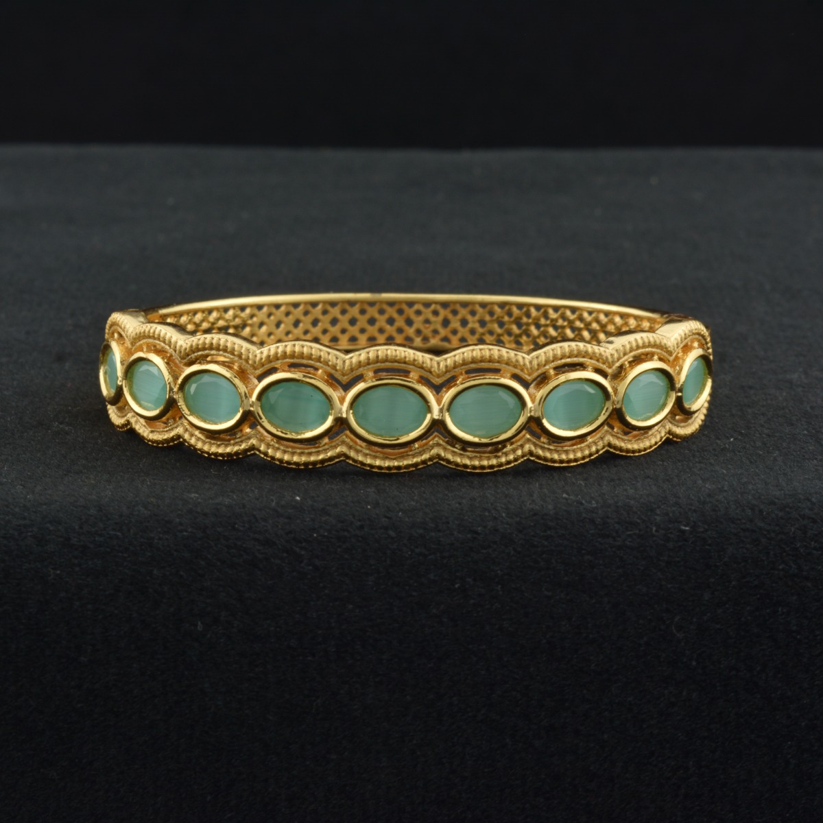 Enhance your festive style with this elegant Kundan Bracelet featuring an exclusive colored stone design. Highlighted with rich mint stones and detailed traditional craftsmanship, this bracelet adds a graceful sparkle to any ethnic outfit. Designed in a without-chabi style for a clean, seamless look, it offers both comfort and secure wear. Ideal for festival wear, traditional gatherings, and special occasions, it pairs beautifully with sarees and other classic attire. Suitable for all regional styles, this bracelet blends timeless artistry with modern elegance. A perfect statement accessory, it brings refined charm and vibrant beauty to your jewelry collection.
