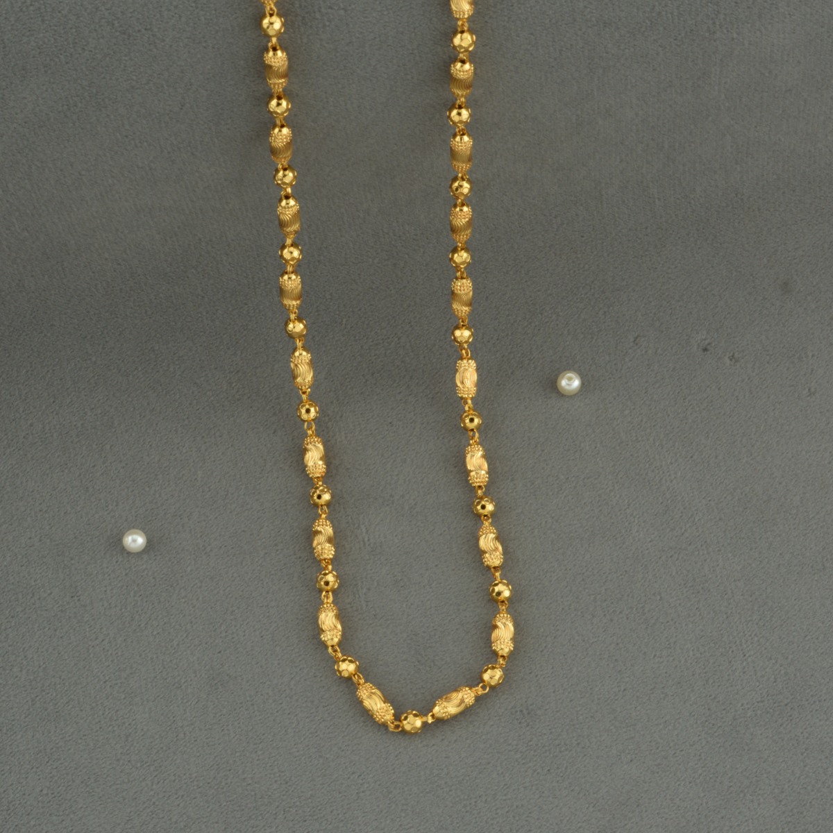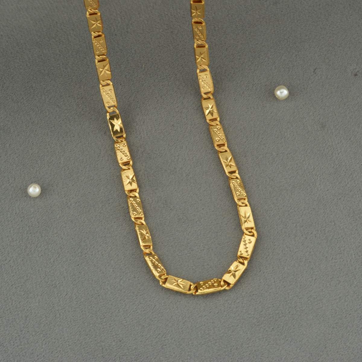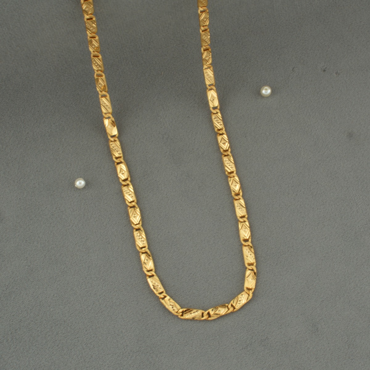 This elegant Shreehari gold-plated chain is perfect for everyday wear, office wear, or as a thoughtful gift. Crafted with high-quality gold plating, its simple yet sophisticated design makes it a versatile accessory for any occasion. Ideal for ladies, this traditional collection piece effortlessly pairs with sarees, Indian suits, and kurtis, enhancing your style with a touch of grace. Whether you're looking for an accessory for your daily outfits or a special gift for someone, this gold-plated chain adds timeless charm to any ensemble, making it a must-have in your jewelry collection.