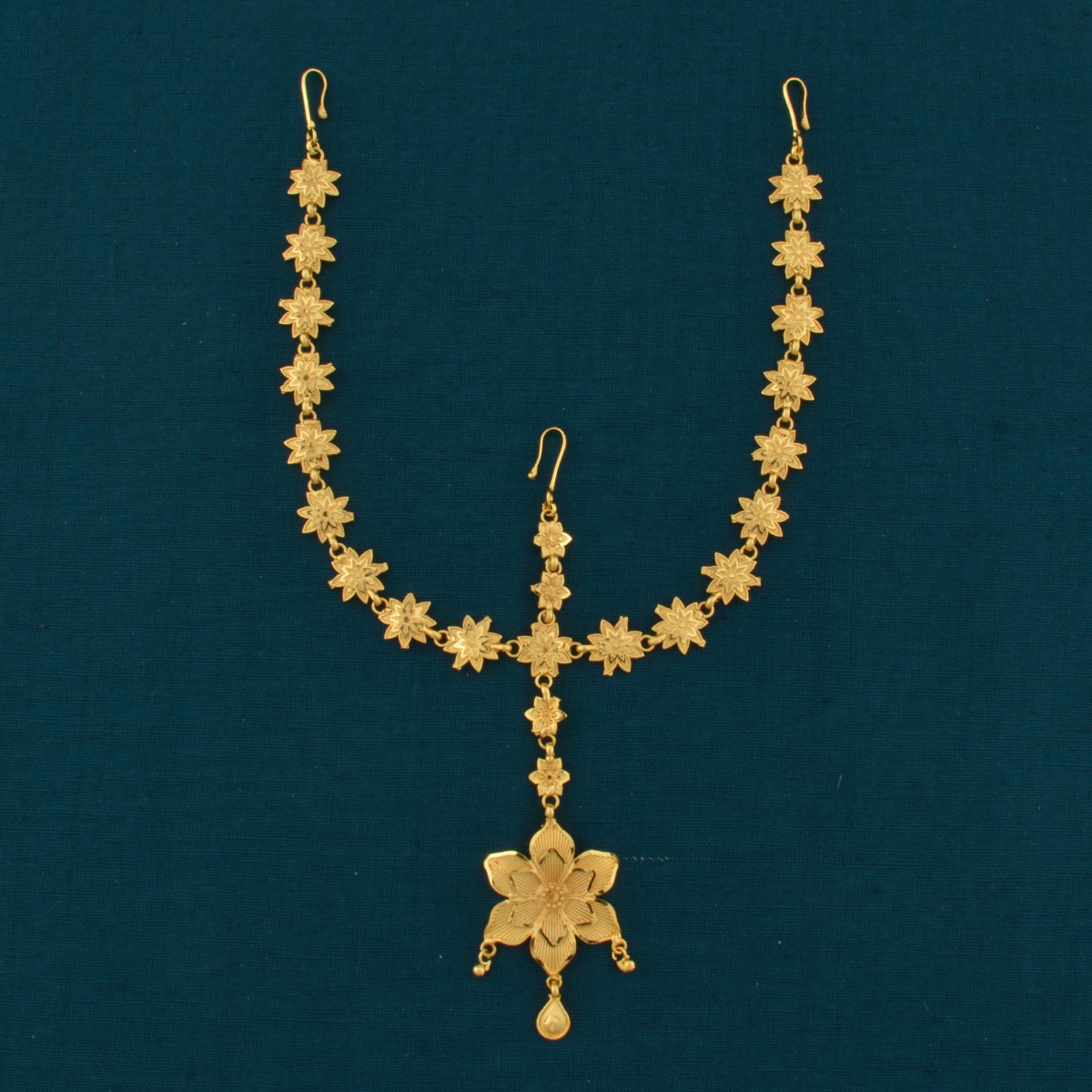 Elevate your bridal and traditional look with this exquisite Tyra Tika or Damini collection piece, masterfully crafted with rich gold plating for a timeless appeal. Designed exclusively to capture elegance and sophistication, it complements festive occasions, weddings, and traditional celebrations perfectly. Its intricate design reflects artistry that transcends regional styles, making it a versatile addition to any ethnic wardrobe. Ideal for pairing with sarees and lehengas, this piece enhances your overall ensemble, adding a regal touch. Part of our Traditional Collection, it promises unmatched quality, durability, and charm. Make every celebration memorable with this elegant and exclusive gold-plated masterpiece.