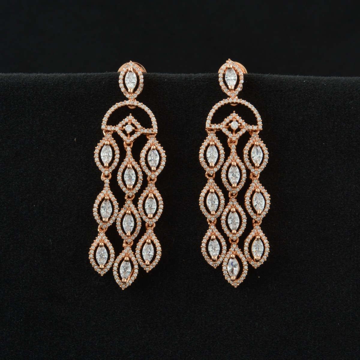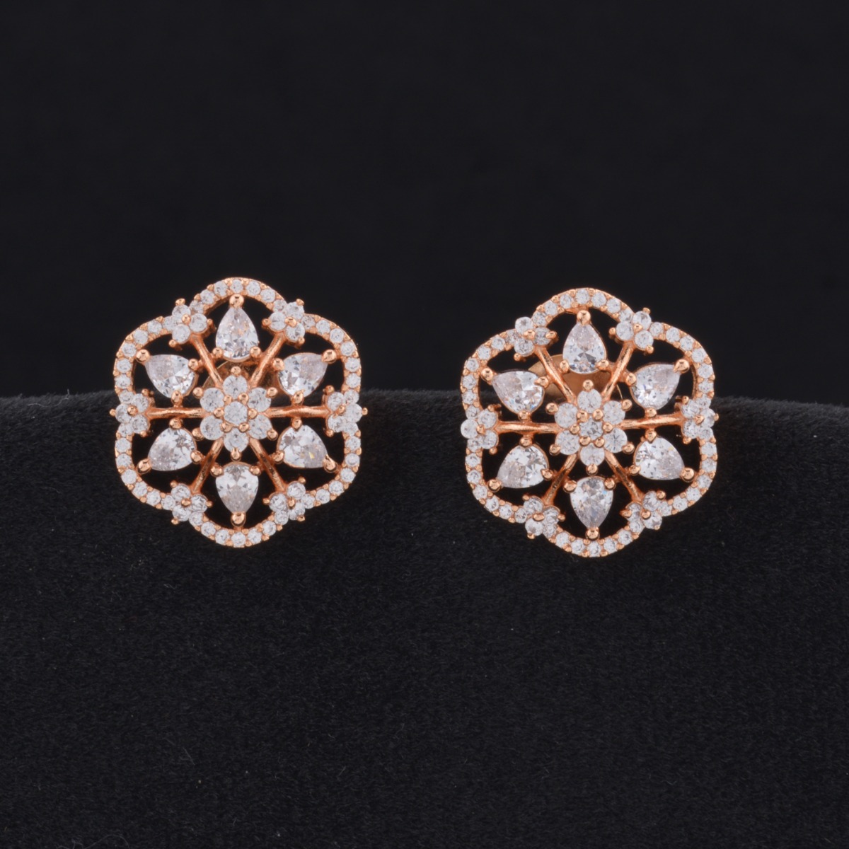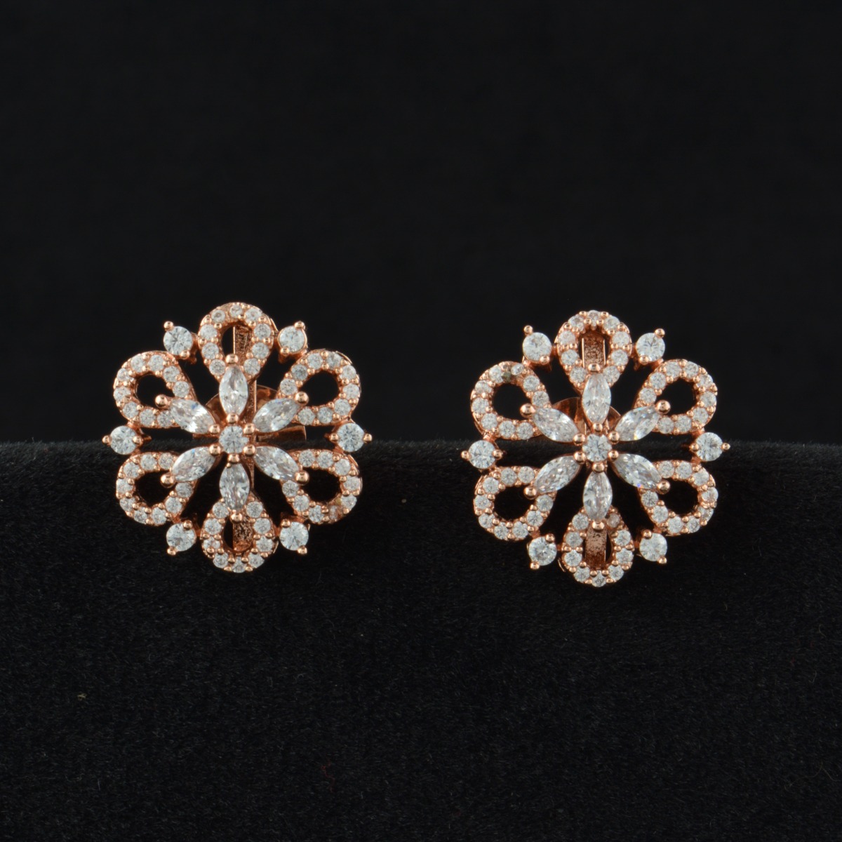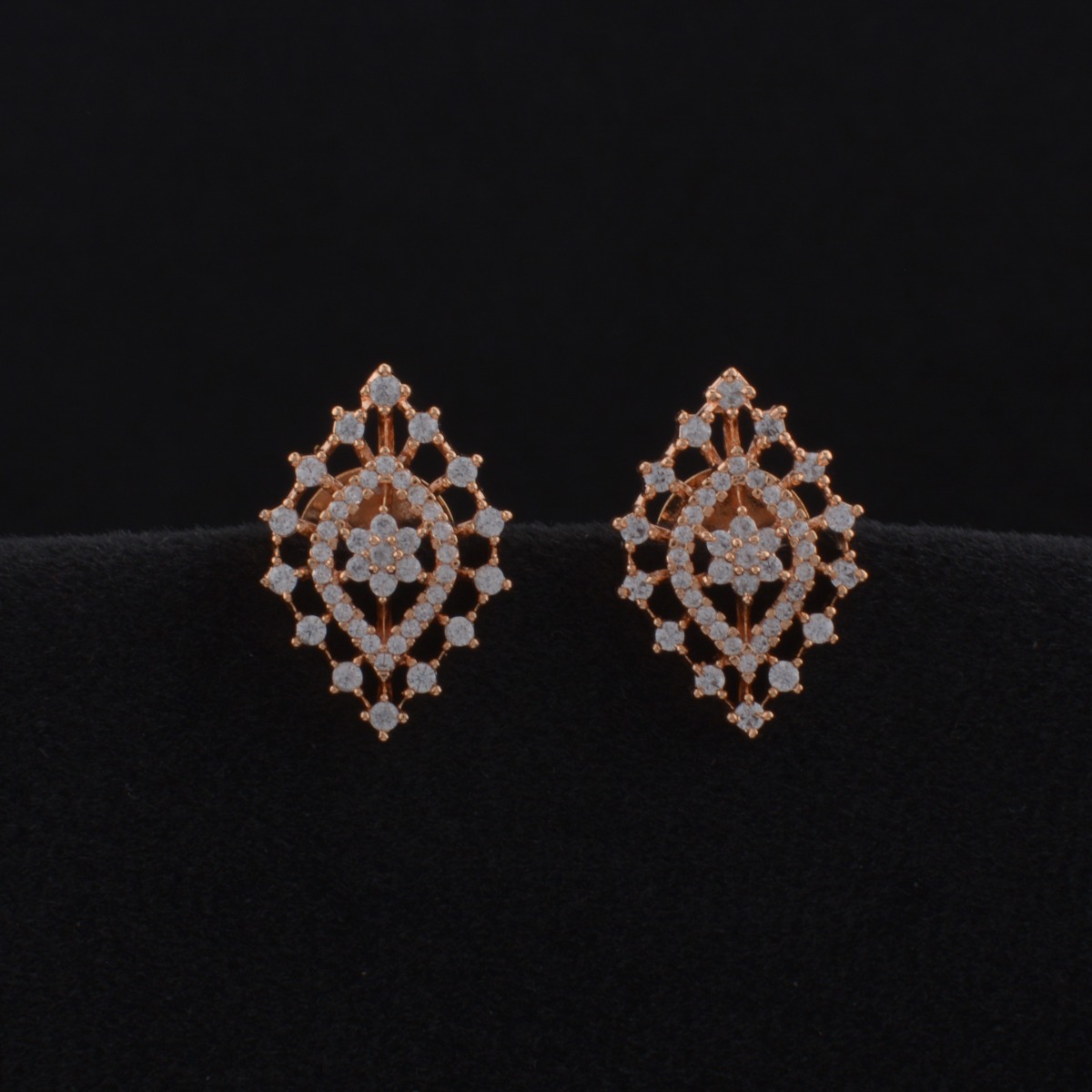 Add a graceful glow to your jewelry collection with these elegant Guaranteed Rose Gold Earrings adorned with brilliant guaranteed AD stones. Designed in an exclusive pattern, they feature sparkling white stones set against a warm rose gold plating for a refined, modern finish. Perfect for gifting, festival wear, and special occasions, these earrings offer a beautiful balance of sophistication and shine. Lightweight and comfortable, they are ideal for extended wear without compromising on style. Suitable for all regional looks, they pair effortlessly with sarees, enhancing your ethnic ensemble with subtle luxury and timeless charm.