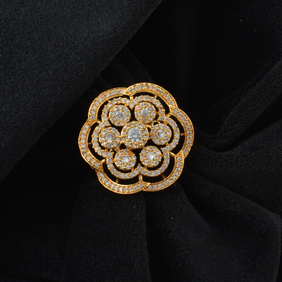 Introducing our exquisite Gold Plated Finger Ring, a versatile accessory suitable for special occasions, everyday wear, and office attire. Crafted with precision and adorned with dazzling American Diamond, this ring exudes elegance and sophistication. The timeless golden hue complements all skin tones, adding a touch of glamour to any ensemble. Whether paired with traditional sarees, Indian suits, or formal attire, this ring effortlessly elevates your look with its understated charm. Embrace the essence of traditional beauty with our Gold Plated Finger Ring, a must-have addition to your jewelry collection for its timeless appeal and versatile styling options.