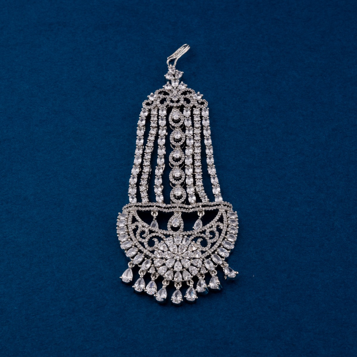 Indulge in elegance with our exquisite Passa or Khopa Jhapta, designed to elevate your bridal ensemble to new heights. Crafted with CZ-American Diamonds and plated with Rhodium, its radiant white hue adds a touch of sophistication to your wedding attire. The modern design of this accessory seamlessly complements sarees and lehengas, enhancing your bridal look with timeless charm. Whether you're a bride or attending a wedding, this Passa or Khopa Jhapta from our Modern Collection is sure to make a statement of grace and beauty. Elevate your special day with this stunning accessory, designed to captivate hearts and turn heads.
