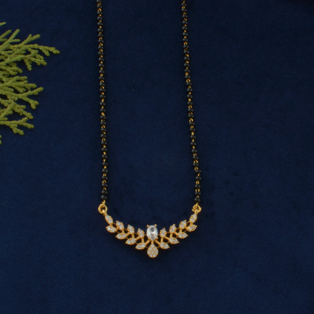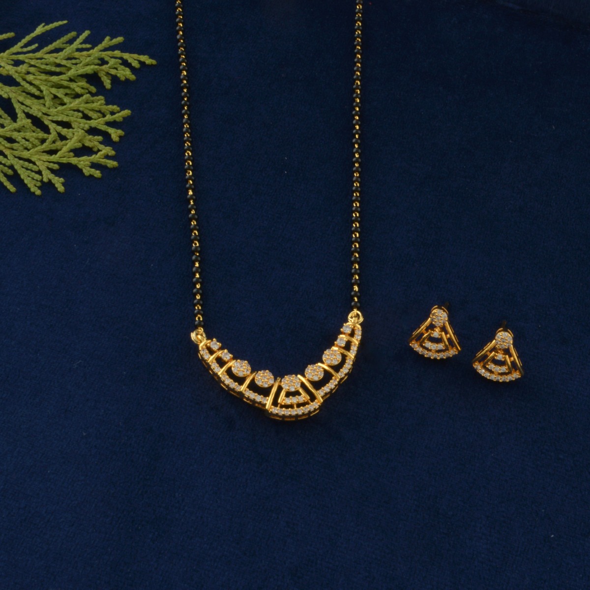 Add a graceful touch of tradition to your jewellery collection with this gold plated American Diamond mangalsutra. Thoughtfully designed for women who enjoy elegant yet meaningful jewellery, this piece features sparkling American Diamonds that bring a soft shine to the classic mangalsutra style. The rich gold plated finish gives it a warm and refined look that suits both everyday wear and special occasions. Whether you are going to work, celebrating a festival, or attending a family function, this mangalsutra fits beautifully with every outfit. It pairs effortlessly with sarees, Indian suits, kurtis, and even formal wear, offering comfort, beauty, and timeless style.