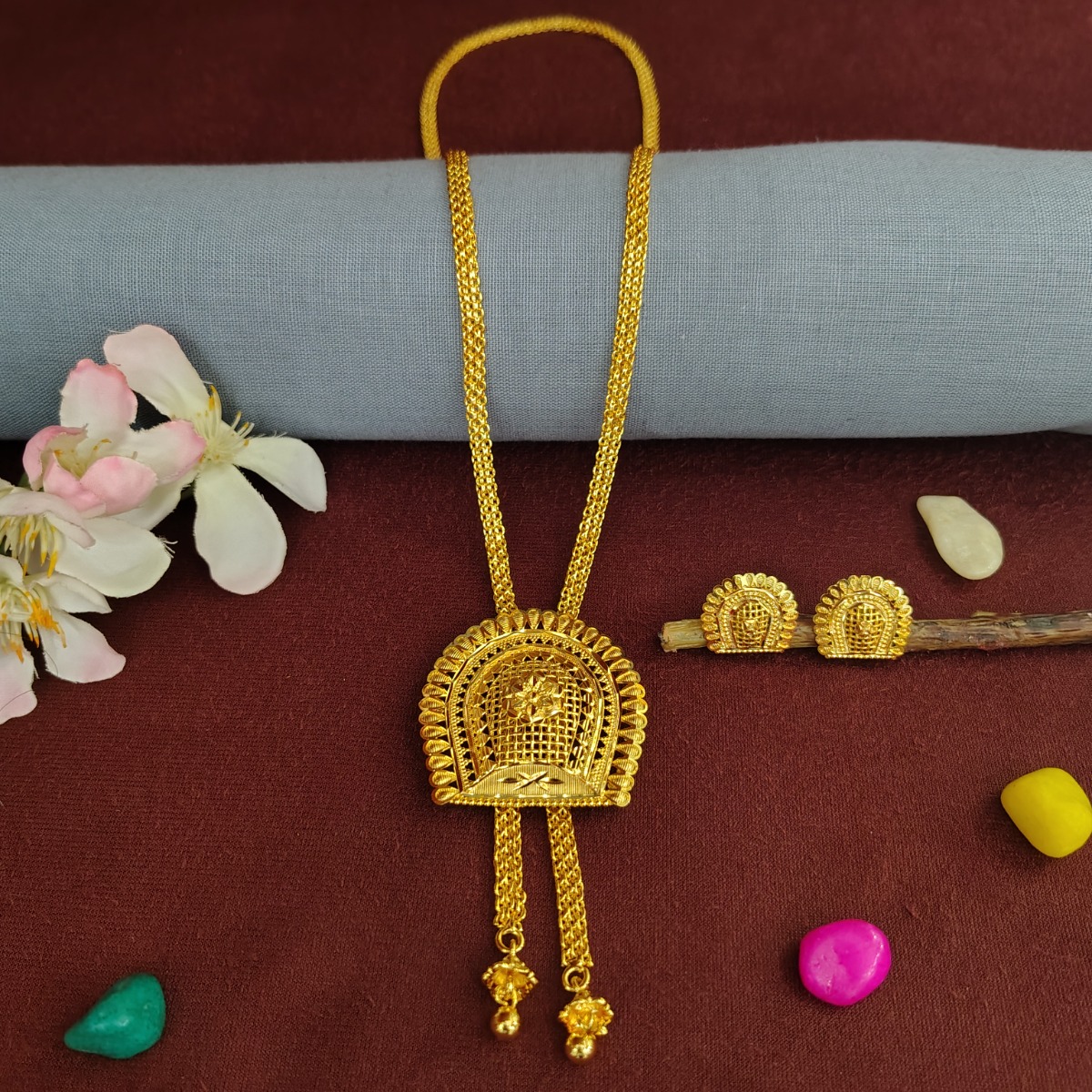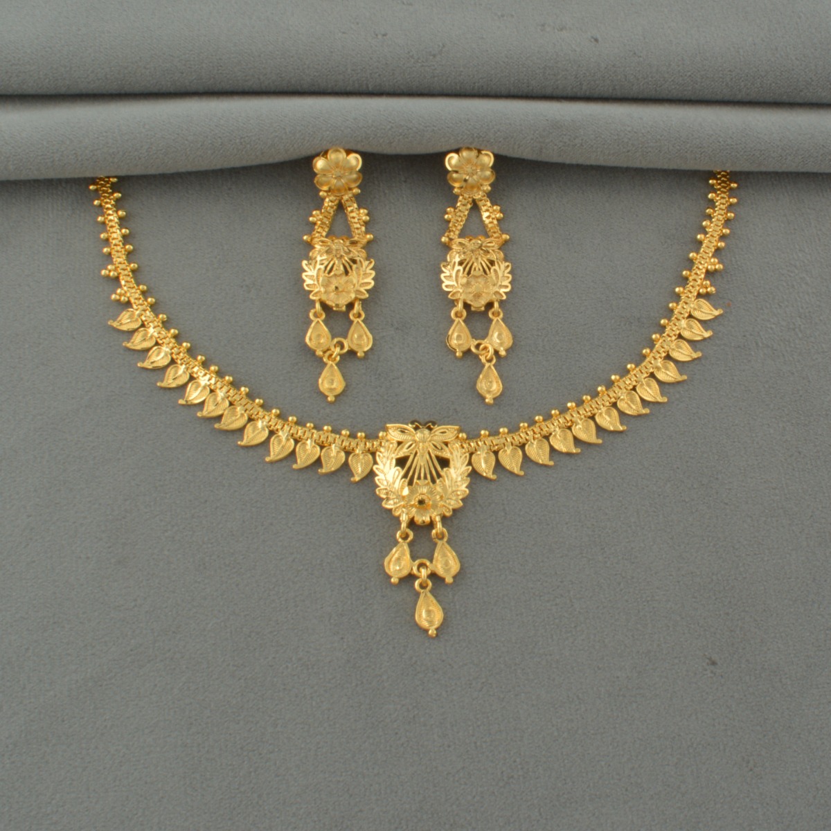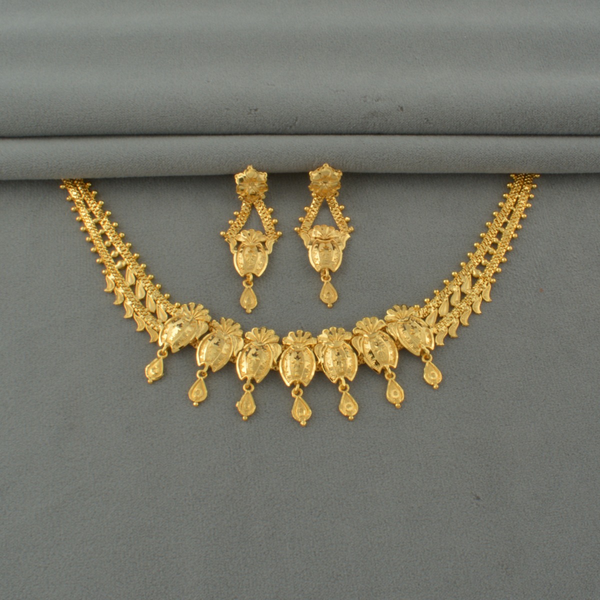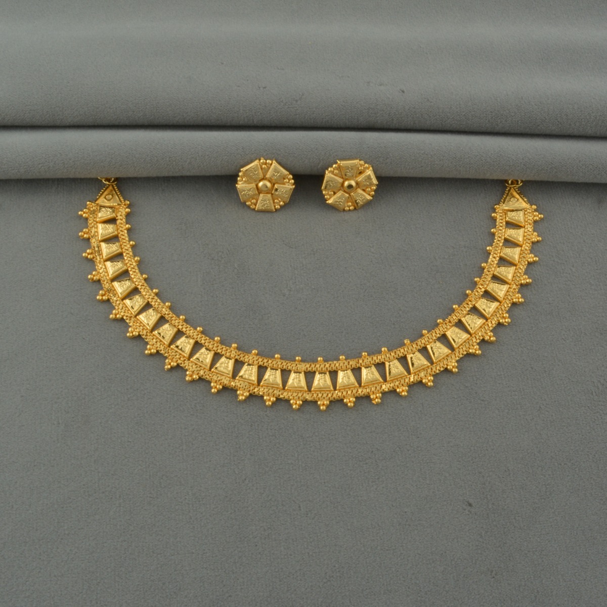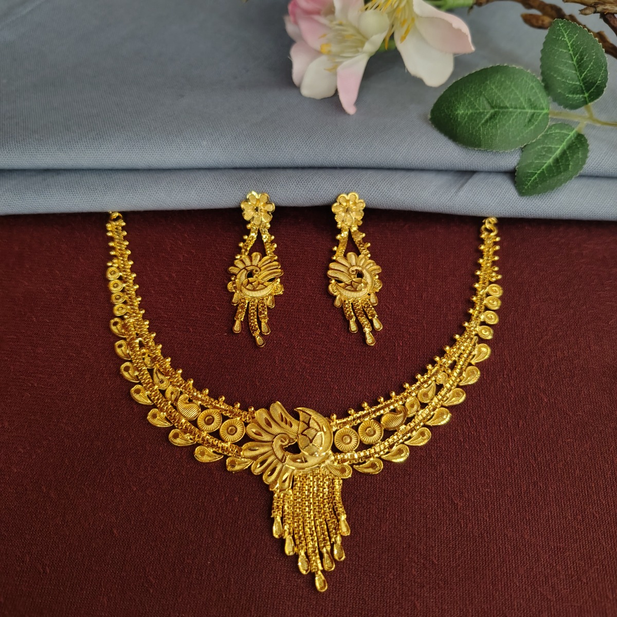 Explore elegance with our Gold-Plated Choker Necklace Set, a testament to traditional grace and sophistication. Perfect for weddings, bridal events, and traditional affairs, this captivating piece boasts a regal gold hue that exudes opulence. The intricately crafted choker style adds a touch of royalty to your ensemble, elevating your traditional look effortlessly. Meticulously designed and plated with fine gold, this necklace set exudes timeless beauty, suitable for various occasions across different regions. Pair it with a saree to radiate cultural finesse and charm. Embrace tradition and add a touch of regality to your special moments with this exquisite necklace set.