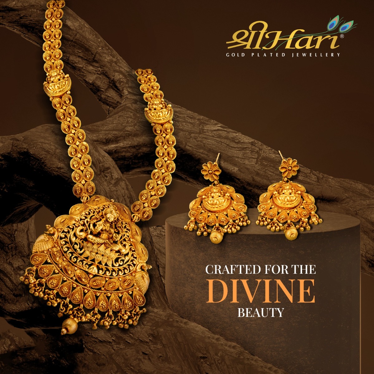This jewellery set consists of a long necklace and a pair of drop earrings. Add this beautiful set to your temple jewellery collection. It comes embellished with dark red and green coloured semi-precious stones and kundan stones. The red colourbead strands are firmly attached to the centrepiece that comes with many rubigeenstone hangings. This traditional necklace has a detailed and intricate work of Bal Gopal on it. Wear it for special occasions like weddings, parties, and more. You can pair this beaded necklace with sarees of any colour. It's a perfect choice for women of all ages. This religious necklace set can help you to amp up your style statement.