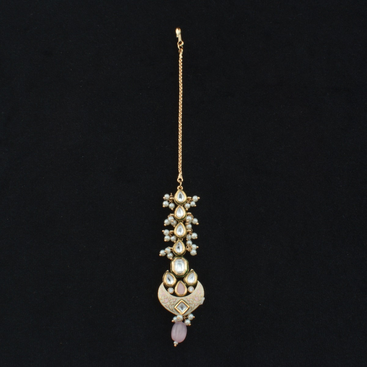Add a graceful finishing touch to your bridal look with this stunning Kundan Tika crafted in an exclusive traditional design. Featuring beautifully set rubi stones and intricate detailing, it brings a soft yet royal charm to your overall appearance. Perfect for bridal wear, weddings, and traditional ceremonies, this tika highlights the forehead elegantly and enhances your ethnic styling. Designed for comfortable and secure placement, it suits all regional looks and pairs perfectly with sarees and lehengas. The fine craftsmanship and vibrant color make it a standout accessory, offering a perfect blend of heritage beauty and festive sophistication for your special occasions.